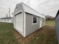 This garage combines classic barn-style charm with serious functionality. Built with a reinforced floor, overhead loft space, roll-up garage door, windows, and a side door, it’s perfect for storing vehicles, tools, or tackling weekend projects.
