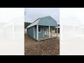 Specs: 14x32 | Belmont Blue Siding | Light Gray Trim | Gray Roof