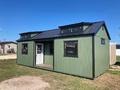 *$400 down on RTO* She shed or man cave dreams! Center porch with the door on the side, black grid windows, transom windows on the sides, and a higher roof pitch with dormers.